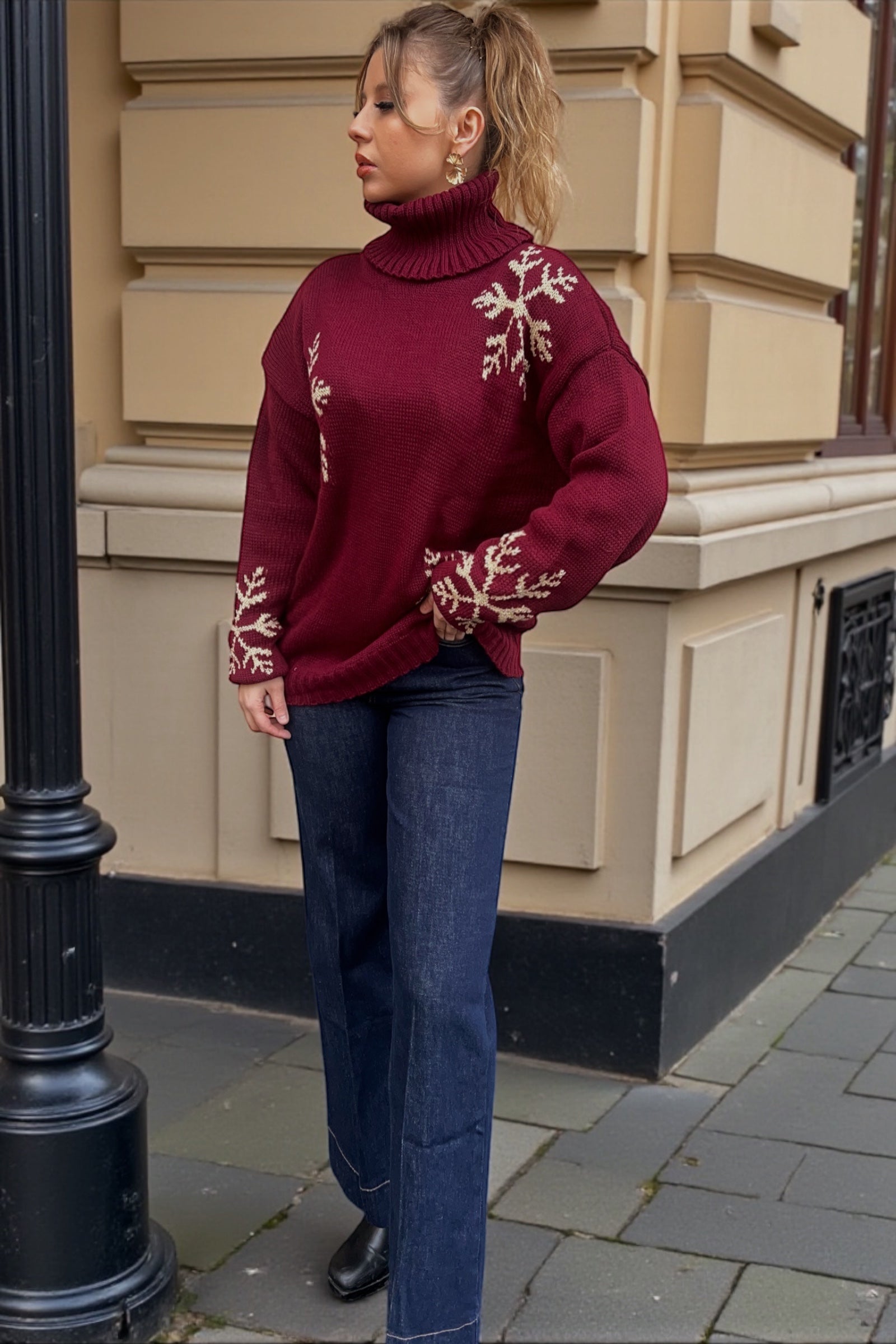 Pull Flocon Bordeaux